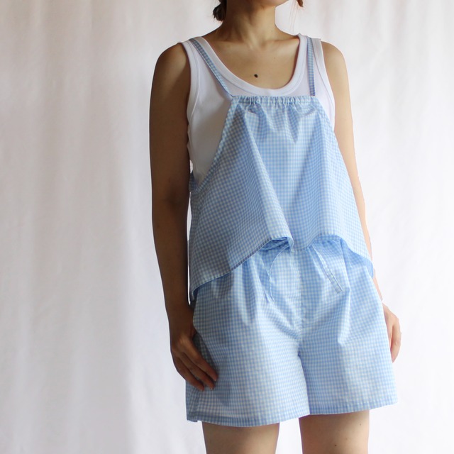 背中のリボン結びがアクセント♪ 台形型のシルエットが、体型をすっきり見せてくれます! 軽やかな素材で、さらっとした着心地を実現し、春夏にぴったりのアイテムです。 ギンガムチェックの柄が可愛らしさを引き立て、フレッシュな印象を与えます。 肩ひもは調整可能で、自分好みのフィット感を楽しむことができ、合わせるパンツやスカートは、ミニ丈にもロング丈にもマッチします! パンツと合わせてカジュアルスタイルに! スカートと合わせてフェミニンに! 着こなし方は自由自在!! ぜひ、ご自身にあったスタイルを見つけてみてください♪ また、同シリーズでセットアップ可能なキュロットとのコーディネートもおすすめ◎ 簡単におしゃれな着こなしが完成しますよ! ■ カラー/サイズ/ ・先染めギンガムチェック(サックスブルー) ・サイズ展開:Free  バスト:100cm  着丈:36.5cm (モデル:身長155cm) ■ 素材/製造国 ・綿100% ・日本(ハンドメイドで、1点1点丁寧に作成) ■ お手入れ/取り扱い注意事項 ・手洗い推奨。または、洗濯ネットに入れておしゃれ着洗いをしてください。 ・漂白剤の使用は避けてください。 ・日陰で干してください。 ・アイロンは低温またはあて布を使用してください。 ■ 発送・注文に関する情報や注意事項 ・ご注文から発送まで通常1〜3営業日を予定しています。 ・数量限定商品のため、在庫がなくなる場合があります。 ■ その他の情報や注意事項 ・お使いの機器の画面設定や、お部屋の照明、日光等の環境などによって、実物の色味と異なって見える場合があります。