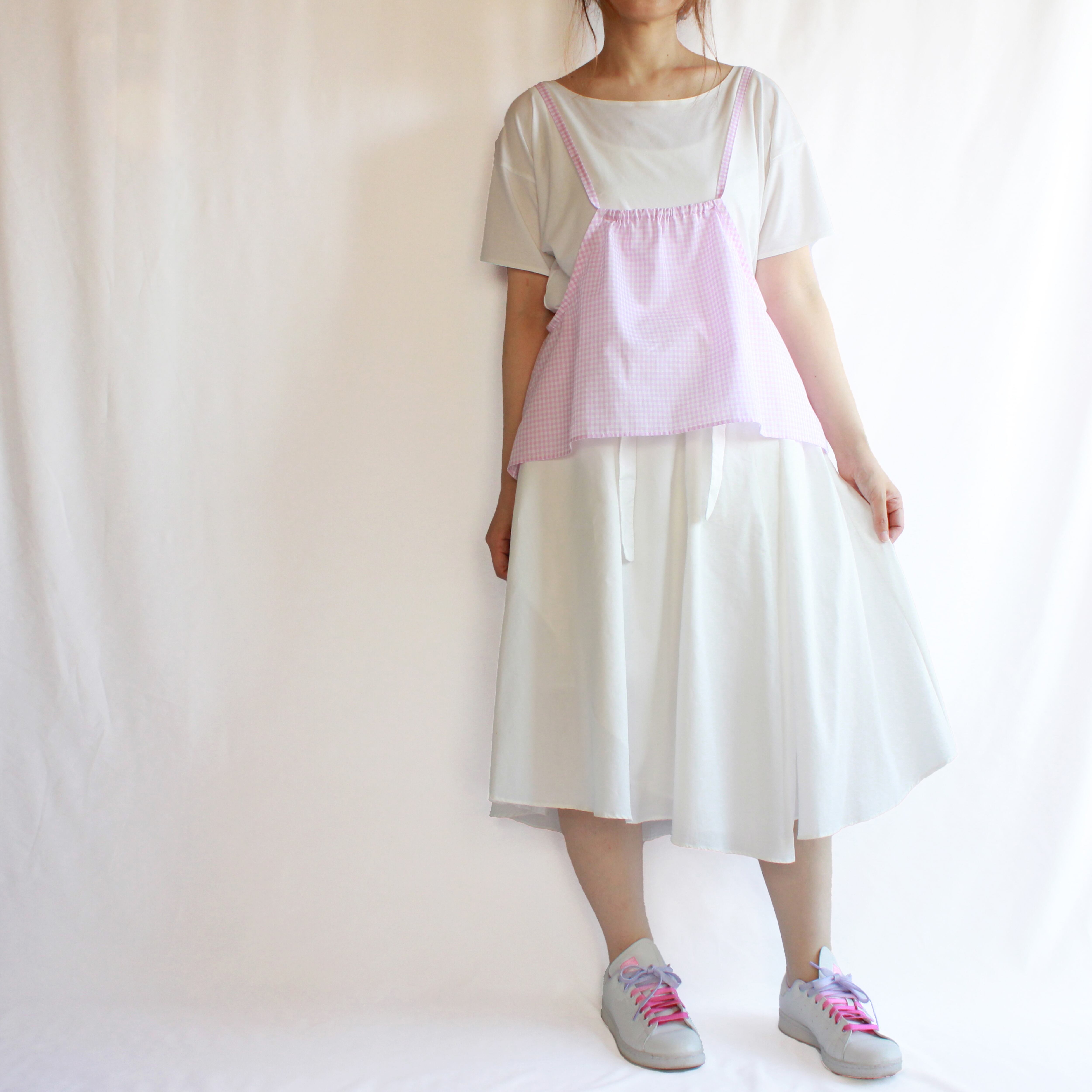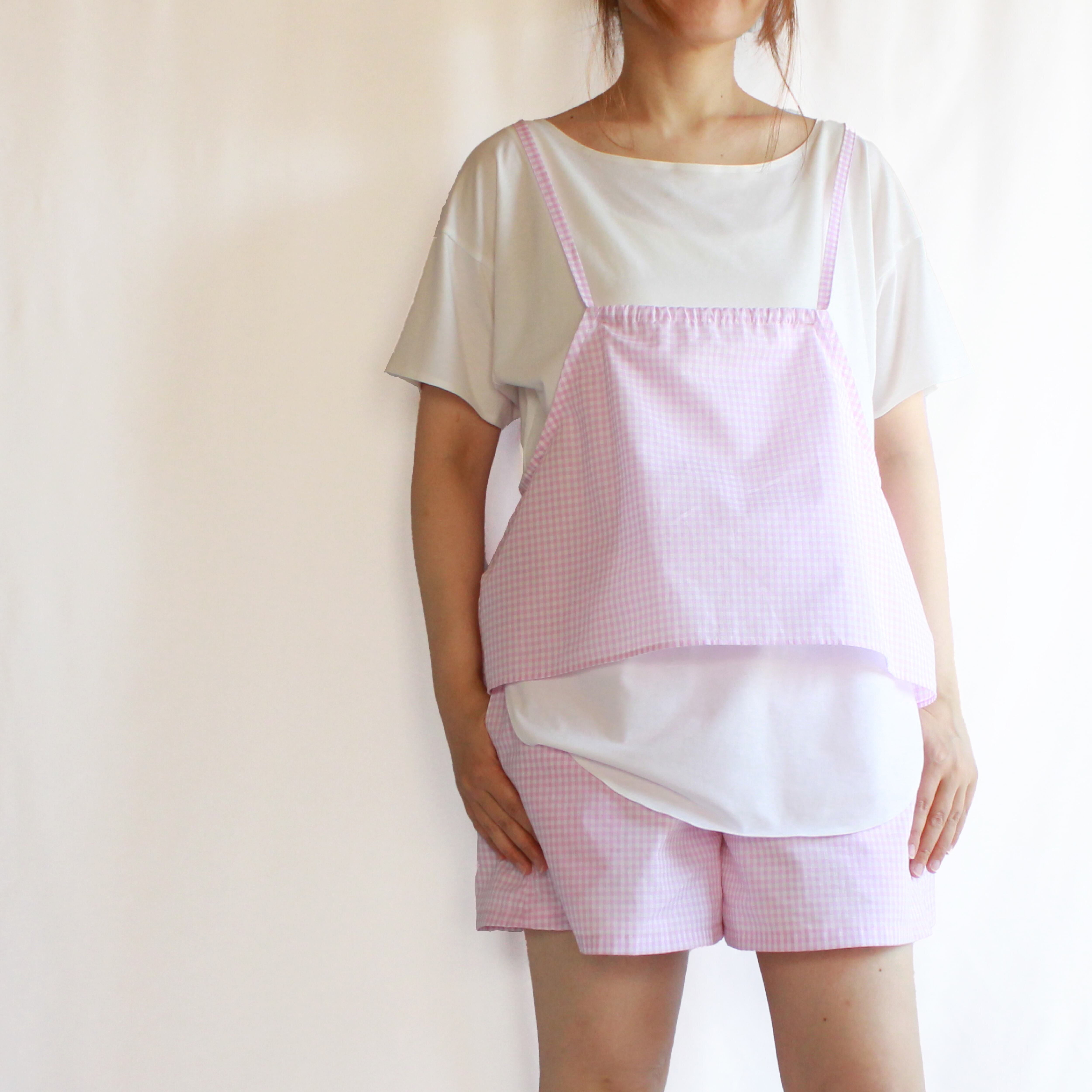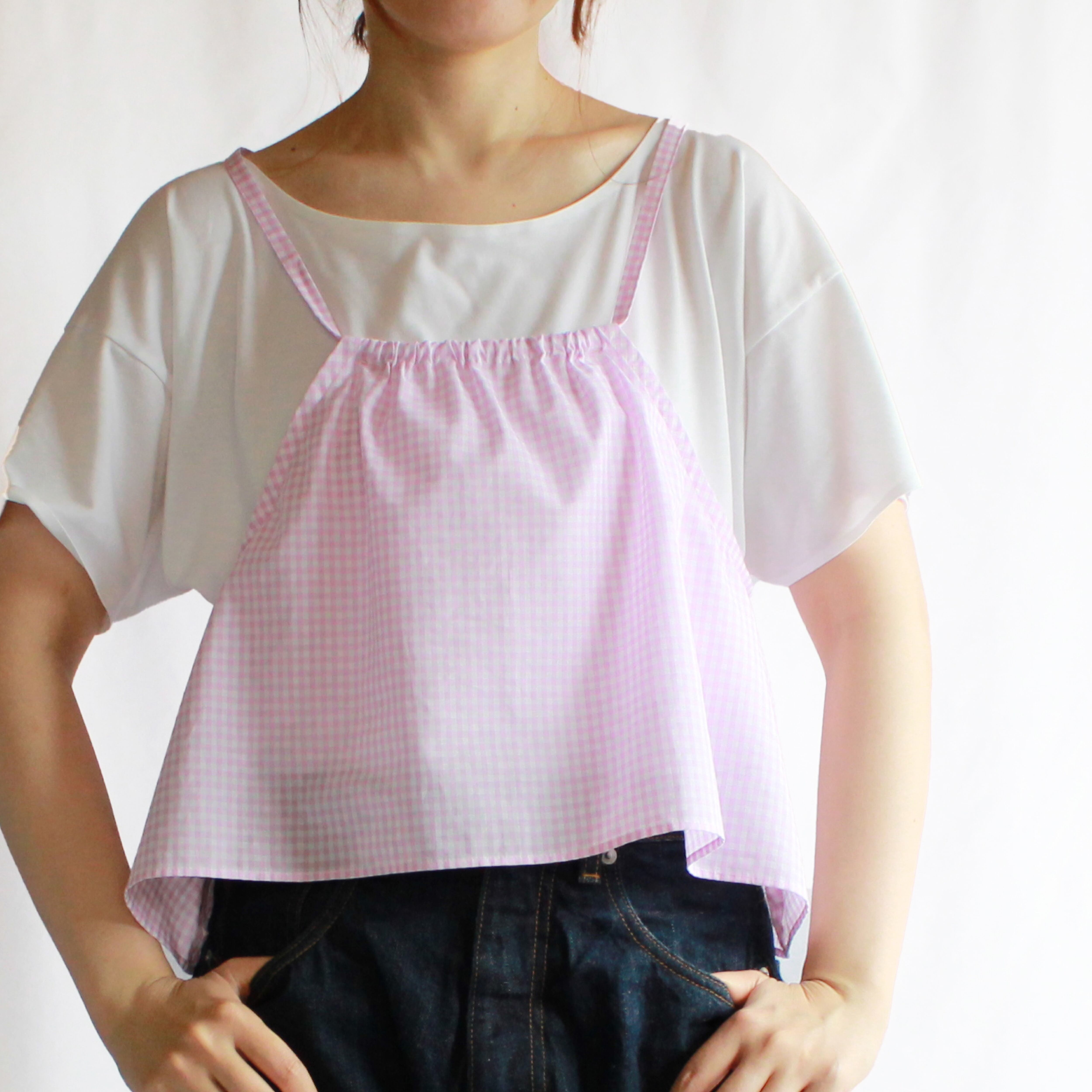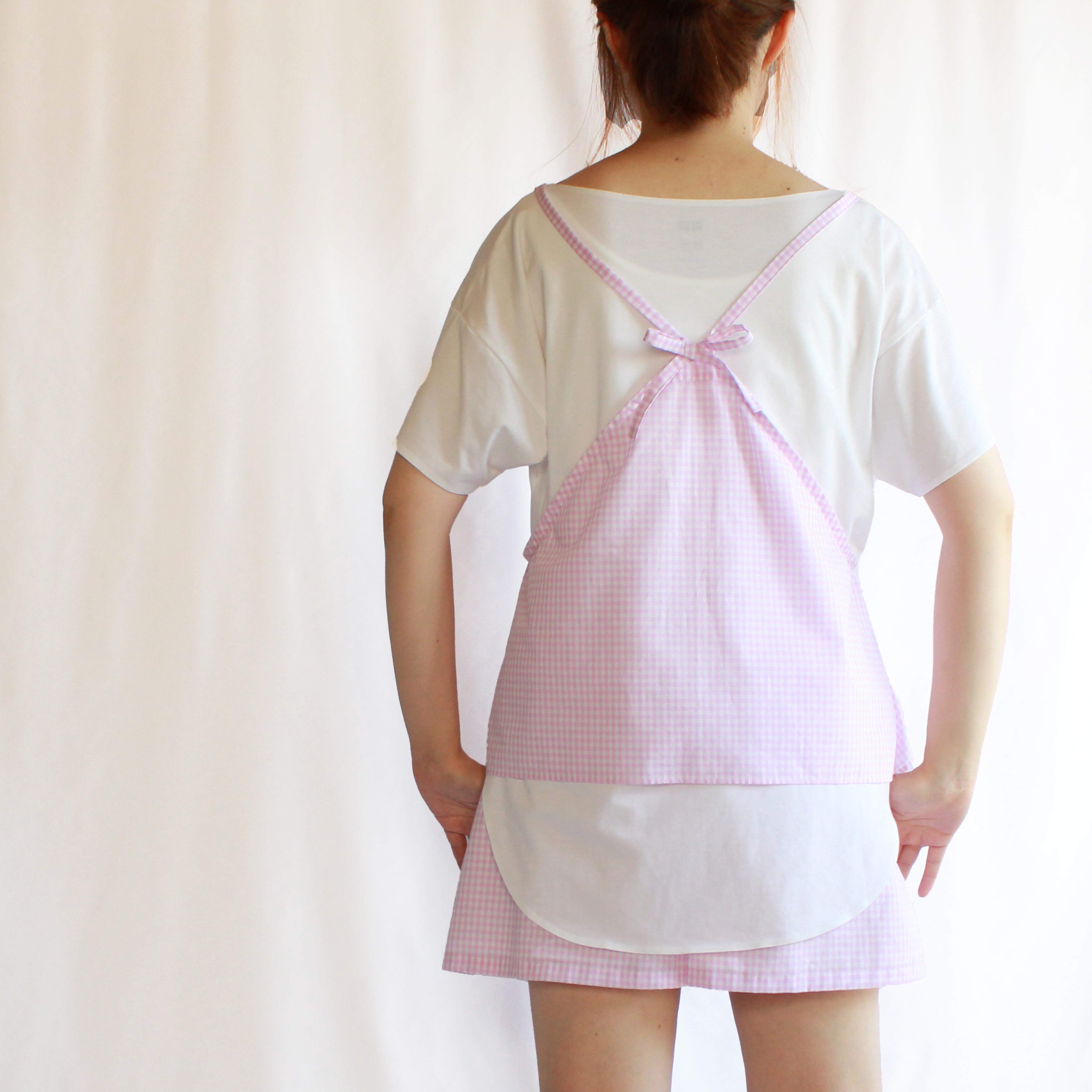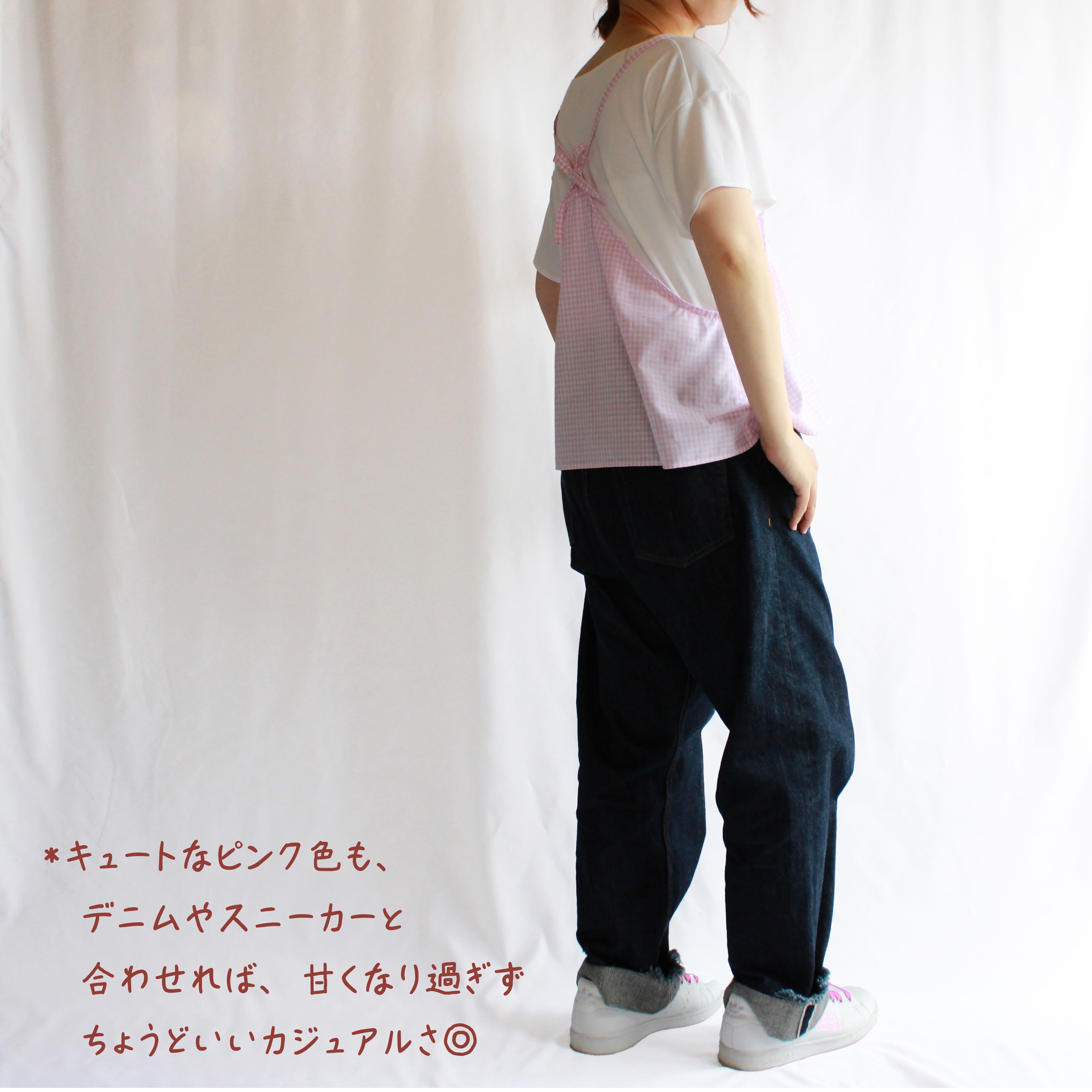 バックリボン 肩ひもミニキャミソール《先染めギンガムチェック》ライトピンク *セットアップ可能